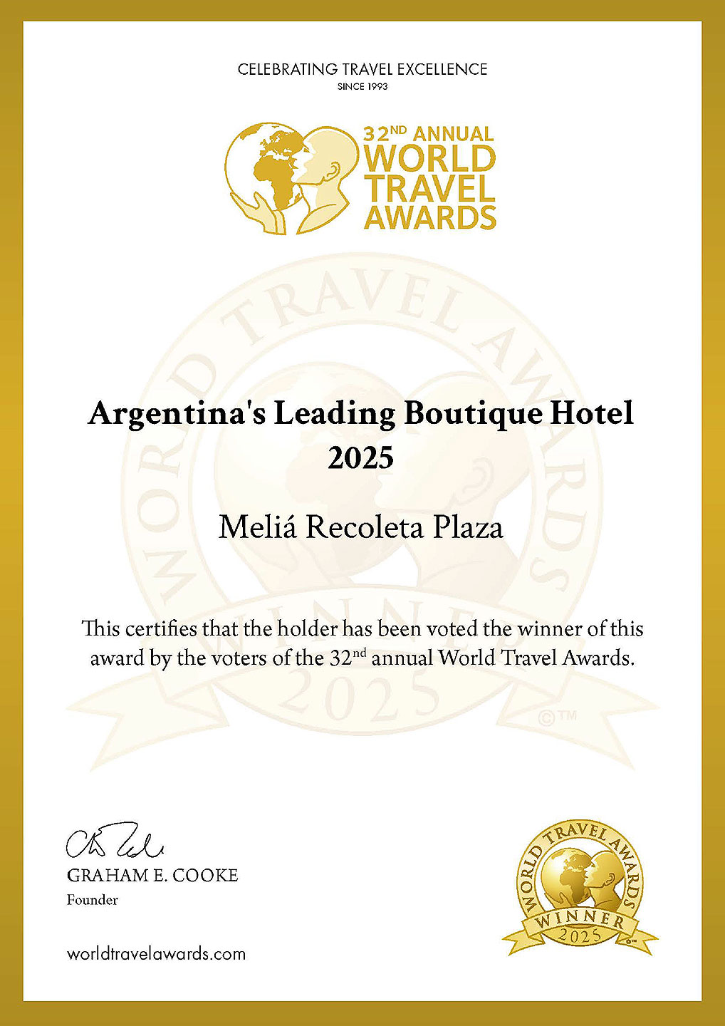 Ganadores del Premio “Argentina’s Leading Luxury Boutique Hotel, 2025 / 32 annual World Travel Awards”.